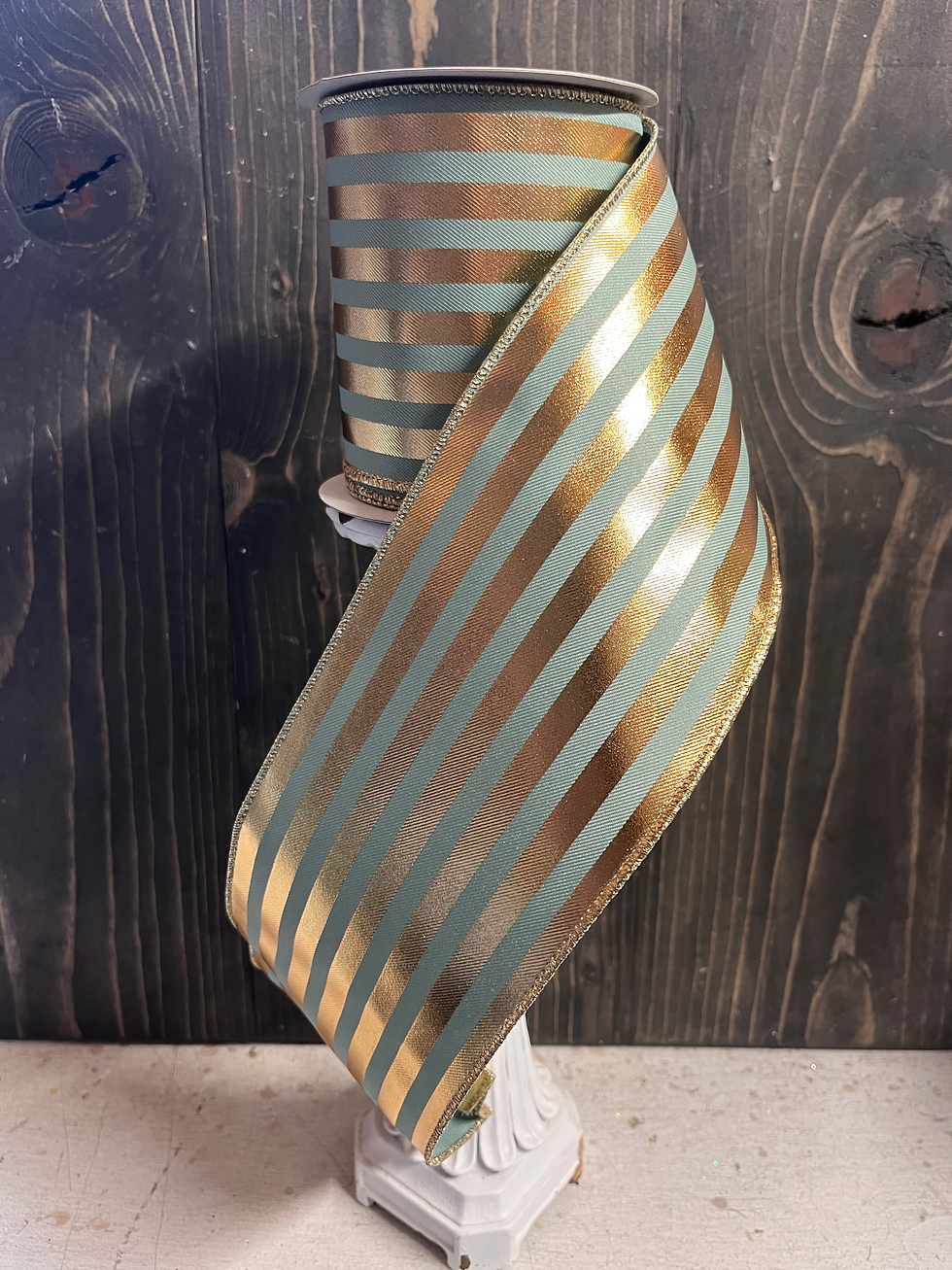 1 " Reversible Classic Velvet Wired Ribbon | Aqua/Gold | 10 Yard Roll